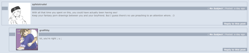 but on the other hand, i totally get the whole "i draw something awesome and get -10 views while wolflover265 over there draws stick animals having buttseks and gets 3k hits." believe me. i know. non-pornographic art totally does not get the recognition it deserves. but being on fA, i think furries also count as a fetish, so on a site that allows rated-R art you gotta expect it.
