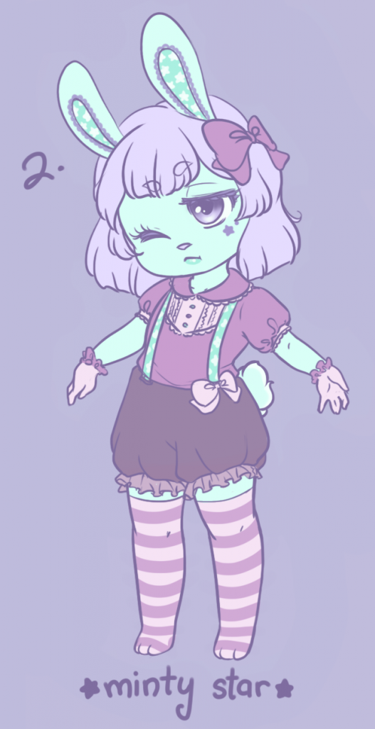 hehe good luck on the adoptables! those bunny girls are adorable! hehe I like the first one, the color combination is really nice. reminds me chocolate with strawberry! hehe her dress and face are very cute too. the second one is nice too. I like the cute clothes. the last one us super cute too. hehe I like her silly face. great job on them all sweet!