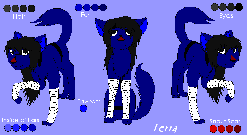 Here's Terra, based around my friend Drachenvuur. Lots of changes on her! No more bandaged front legs, MARKINGS 'cause she had none, random other colouring changes too.