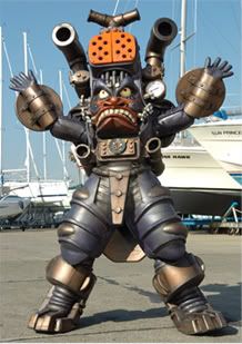 An incinerator ( 焼却炉 ) Savage Sky Barbaric Machine Beast under Kitaneidas, putting stuff into the furnace on his forehead to induce smog and perform his attacks. Shoukyaku Banki prefers to burn flowers and anything pretty to improve the toxicity of his smog. He fails in his mission when the Go-ongers arrive, and is forcefully upgraded by the Pollution Ministers. Shoukyaku Banki is the first to be scrapped by Engine-O.