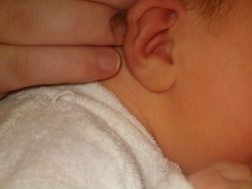 Hehe up until she was 5 months old, she actually [in real life] had tufts on the back of her ears. We found it absolutely hilarious in the hospital, my mother was, of course, completely mollified. She's scared of us furries.
