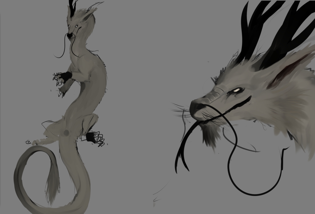 Syntax0 for helping me with the name :D) according to him, Shirokaze would be something like "White wind", this sexy guy is a combination of eastern and western dragon, he maintains his long thin body but with the western anatomy (wings and quadruped). Still this is an experiment, even if he will be like that, I'm not sure about his details, (like adding more black fur, or just leaving him all white, eye colours etc) also I still need practice with fur and feathers, I'm totally new at doing that.