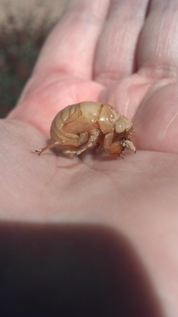 Also, just for the creepiness factor, here's a pupal state Cicada I accidentally dug up when doing some gardening.. He was NOT happy.: http://i1158.photobucket.com/albums.....ps3bfd8ae9.jpg