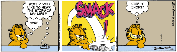 Finally, a comic worthy of my attention! It just might have been even better if I had a cameo appearance. Well...I guess technically I did. Perhaps I'm the cicada and this is an awkward way of portraying myself. Plus, I guess I bug people now and then. Hah! Huh... save any of that pizza?