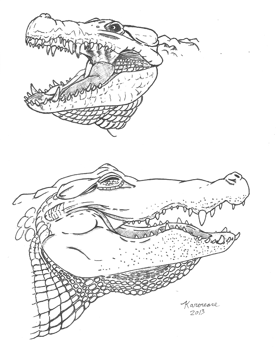 Just trying my hand at doing some realistic style gator/croc heads, as well as trying to get the scale patter down a little bit better, done in pencil and ink. Will probably do more of these later on.