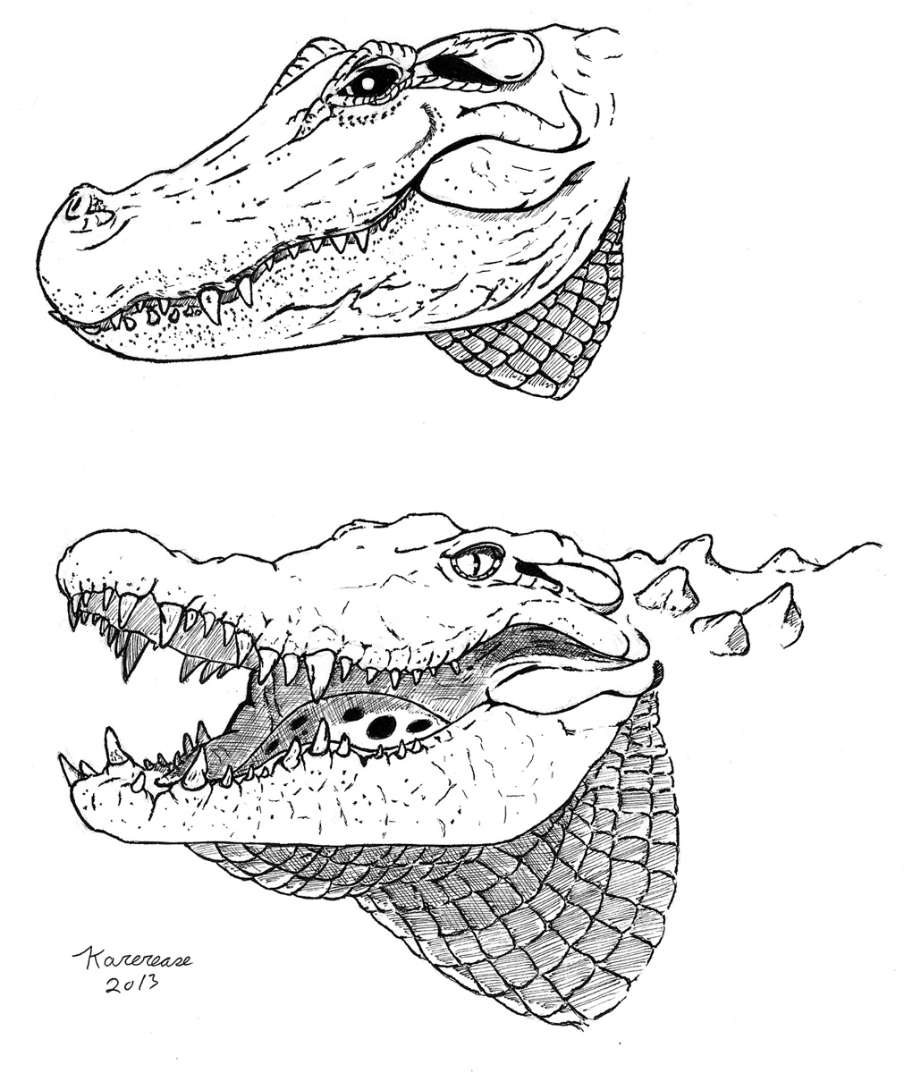 Just some more pencil and ink practice work with gator and croc heads.