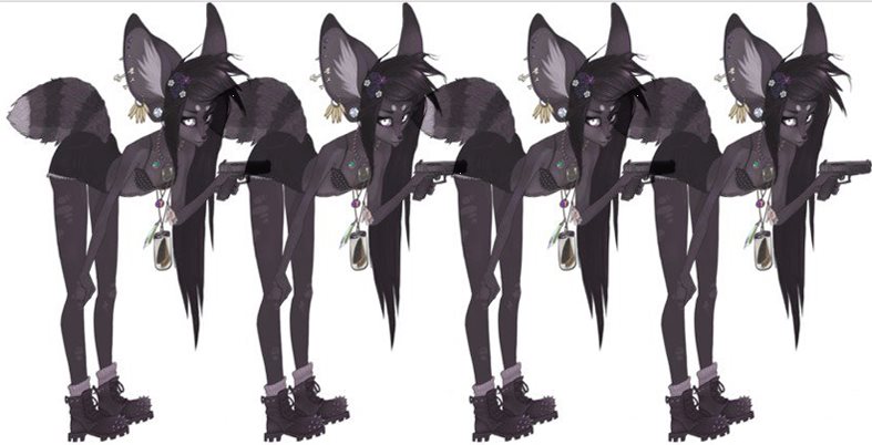 Just thinking about how you do your art and just go over and over and over it with your perfectionism... It really shows! There's just an immaculate variation of detail and shading and depth, and just how you paid attention to how the shading would look and feel on the different materials and items like the hair and the gun and her tail fluff and shorts. I just now noticed the braid in her hair by her ear too. I love all her accessories and her hair is gorgeous too. I really love her eyes and ears. The face is so well done. Everything looks great.