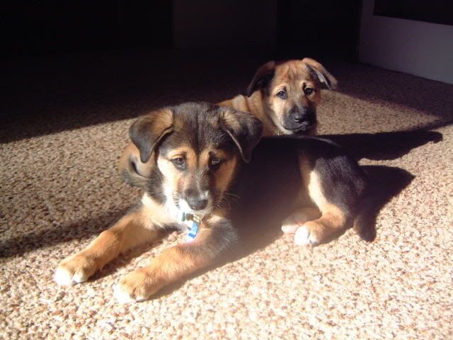 The woman said the dad was some mix, probably, and had flop-ears. We're hoping the shepherd in them will get the ears to perk up, though. Speed has been like 'I won't love them as much if their ears don't perk DX'
