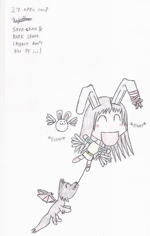 Now you might be confused with the picture. Some things were said in the Treehouse (Saya's thread on GiveUpAlready.com) and something about her being all 'floaty' and 'floating away' and me holding her with a piece of string like a baloon. So Legion ended up sketching that very scene with his version of Saya.