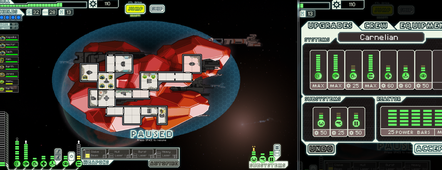 What the carps, FTL! I'm glad others have played this cool indie game. Is been a while since played it. I got kind of upset I couldn't get all of the unlocks and I didn't want to go to a walkthrough or cheat. Still a damn cool game :). Frustrating at times (I always seem to stalemate with the final boss), but awesome.