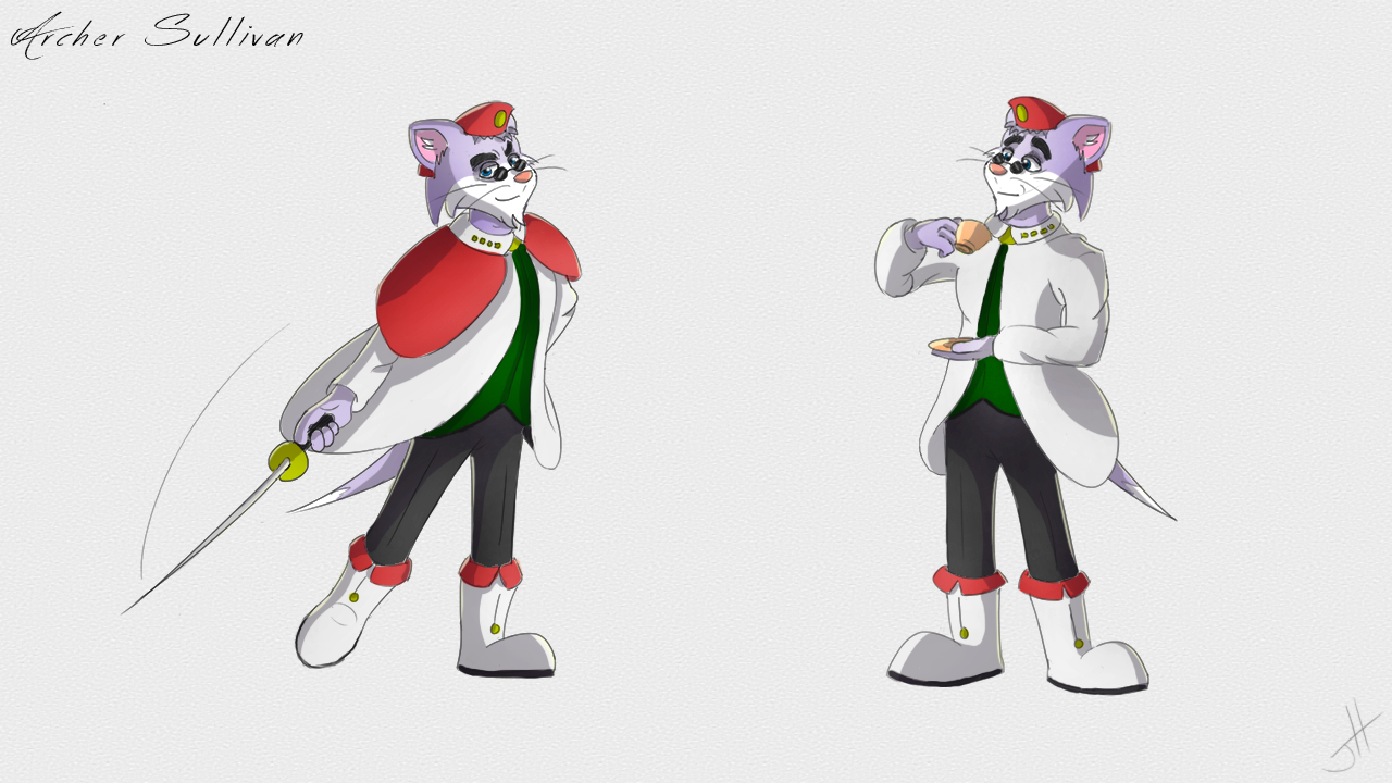He's a high ranking military officer (Commander actually lol), and has acted as Enzo and Arlo's father figure since their dad was killed 20 years before. He's practically family. Archer is a strategist, cool-headed, has good taste, but is a bit OCD, which may actually benefit him when he's commanding in battle. He puts up with a lot of crap from Arlo since Arlo constantly sees him more as family than a superior officer.