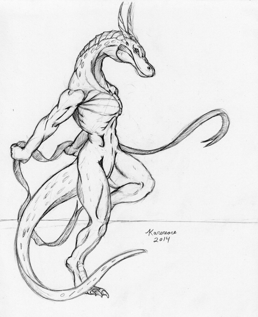 This just popped out of my head and onto the paper last night, a lizard guy doing some sort of dance with a long ribbon.