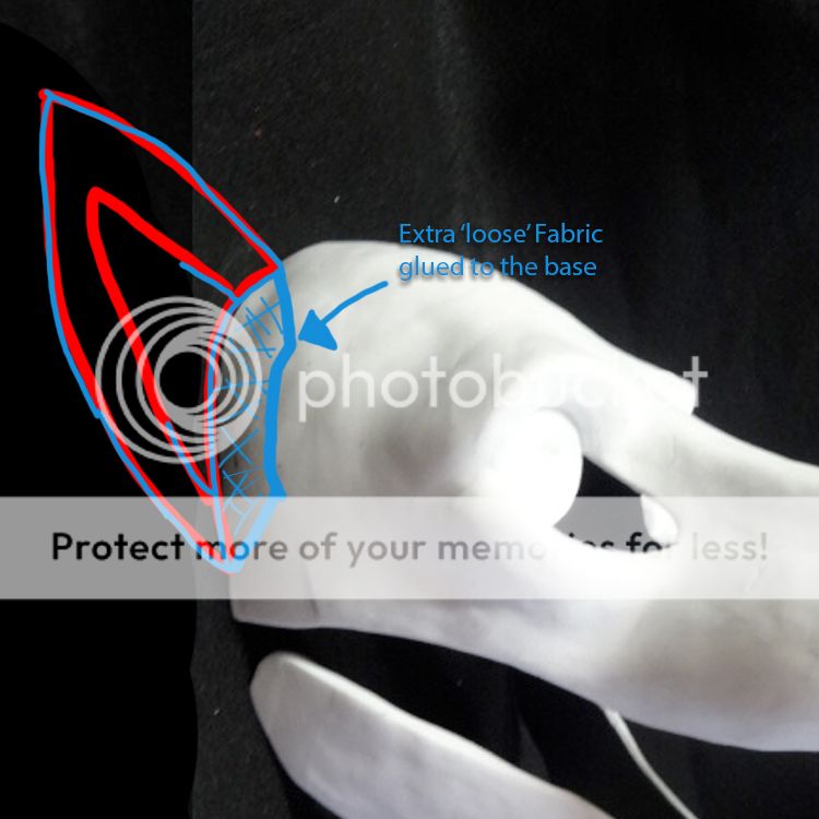 Here is a thing i quickly whipped up, I leave a lot of extra fabric space at the bottoms of my ears so that I can glue the extra fabric from the front side to the base, and then sew the hood to the back side. http://i1002.photobucket.com/albums.....ps3d4ae988.jpg