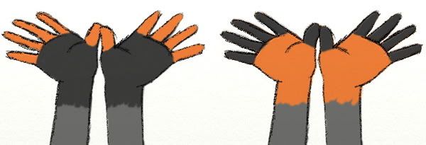 Ever since I changed Gabe from a red fox to a gray fox I've felt that his hands were..well..naked. As a red fox he had that glove like change to a dark fur color on his paws. When he became a gray fox his arm all the way down to his fingers were straight gray (same with his legs). I thought I would try some different hand colors with Gabe to see how I like it.