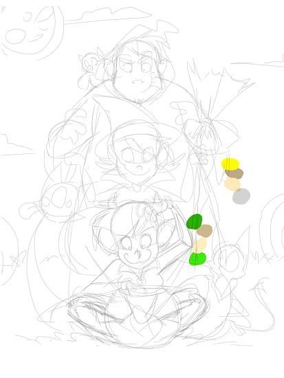 I was practicing their Halloween costumes and decided to color the sketches in. <3 Costumes forrr... http://i229.photobucket.com/albums/.....lloweenWIP.jpg <-THIS... Which I know you can barely see, but hopefully it'll be finished by the 31st!