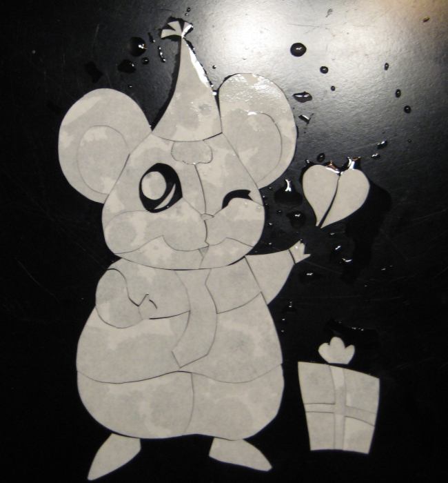 This is the first time I've done something like this. I sketched a picture of Nunya, then I decided to cute pieces of him out, either for color or shape, and then wet it (so it'd lay flat on my desk) and re-arranged it backwards. (: I don't know why exactly, it's just what I did.