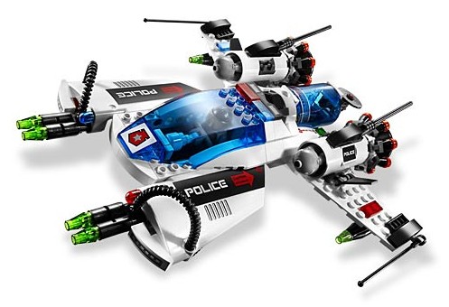 As you can see on the cover of 5973 Hyperspeed Pursuit, the VX-Falcon is LOADED with laser cannons. And I feel these lasers are strong enough for the Silver LEGO Blowup ability.