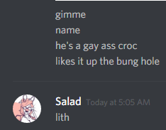 He's a gaaaay ass croc, and named Lith, 'cause my friend said so.