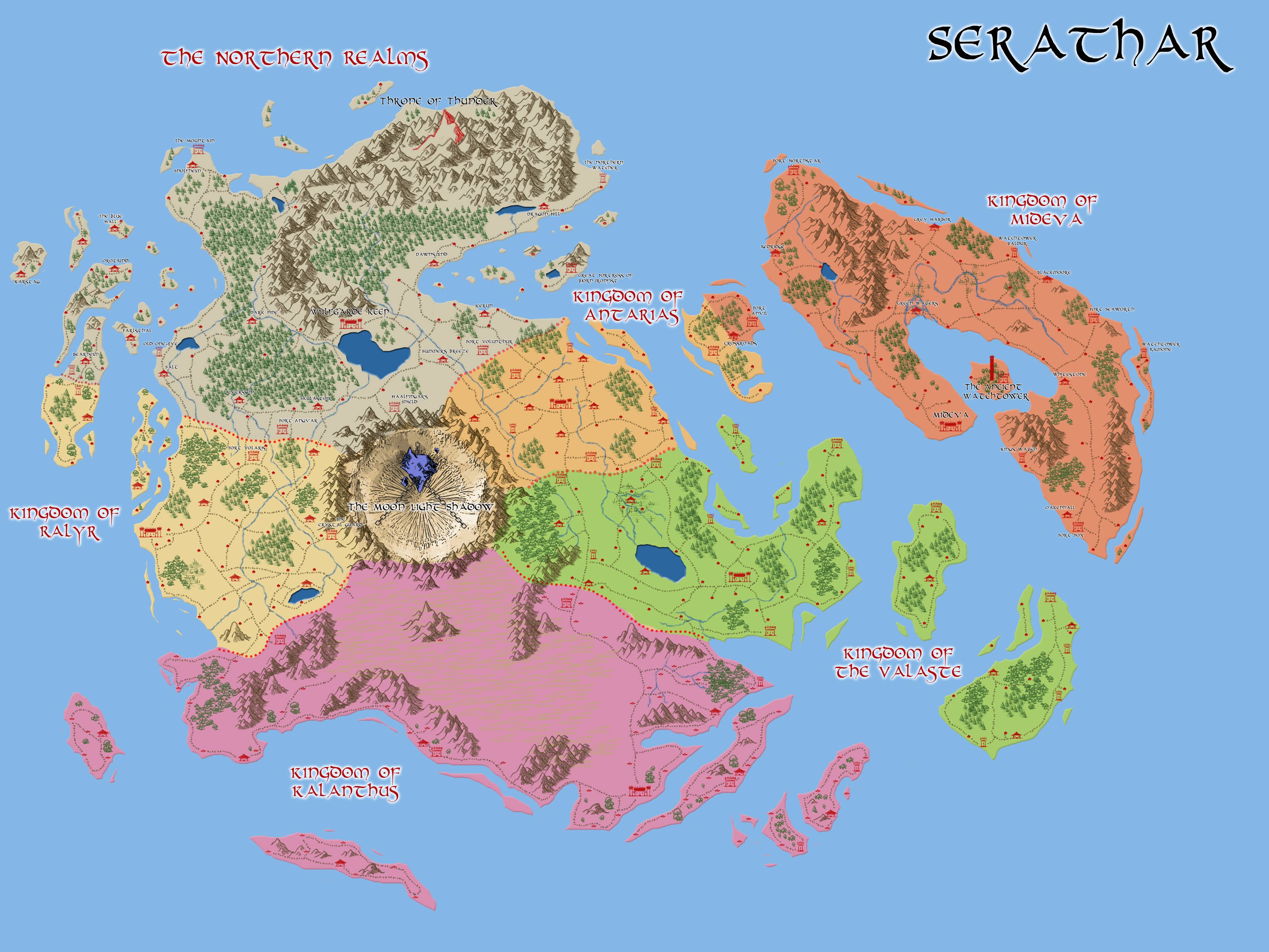 Serathar is the main continent of my Story "Moon Light Shadow" (also WIP). It's a medieval world based around the usage of magical crystals to cast spells, but also power machines and technology. For example, airships are one the newest inventions.