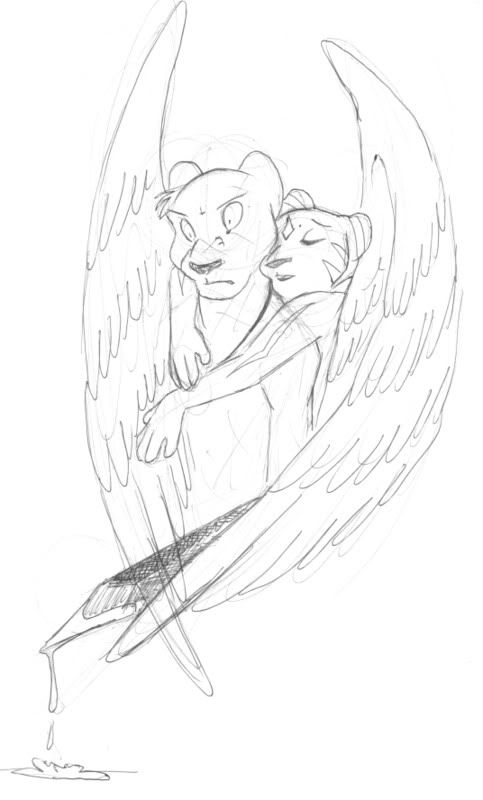 Yah. I felt like coloring but I didn't have any of my own sketches I wanted to color, so I colored one of my very favorites Dodger did for me. So. To restate, I did not draw the original sketch. I inked, colored, and shaded though.