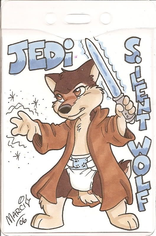 Heheh...this badge has a bit of a story behind it. Mostly because I've been looking for a babyfur badge that isn't your standard eye-melting cute and could work with some of my other ideas for a more complicated badge. *giggles* Sooo...I had a specific artist in mind when to commission and seeing Shiro's badges from last year I decided that I'd give him an idea and let him at it. Of course luck came and I got to go this year...and managed to get a commission from him. The original idea was to do an Imperial Knight from Star Wars: Legacy from the Fel Empire...welp, the idea transitioned into more of a Galen Marek ish take on the character (the other idea I had and kept a ref pic for was an Imperial Saurdukar from Dune). *nodnods*