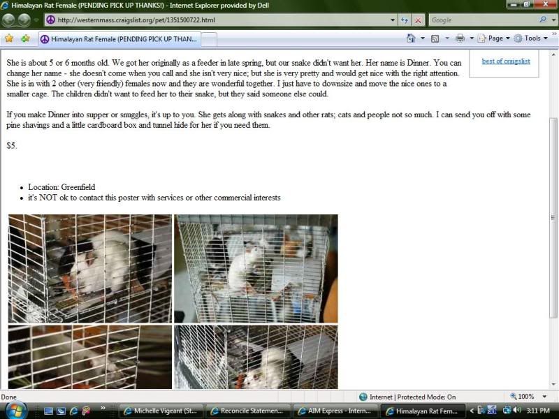 This is Inari, a rat I saved off of craigslist from this ad: