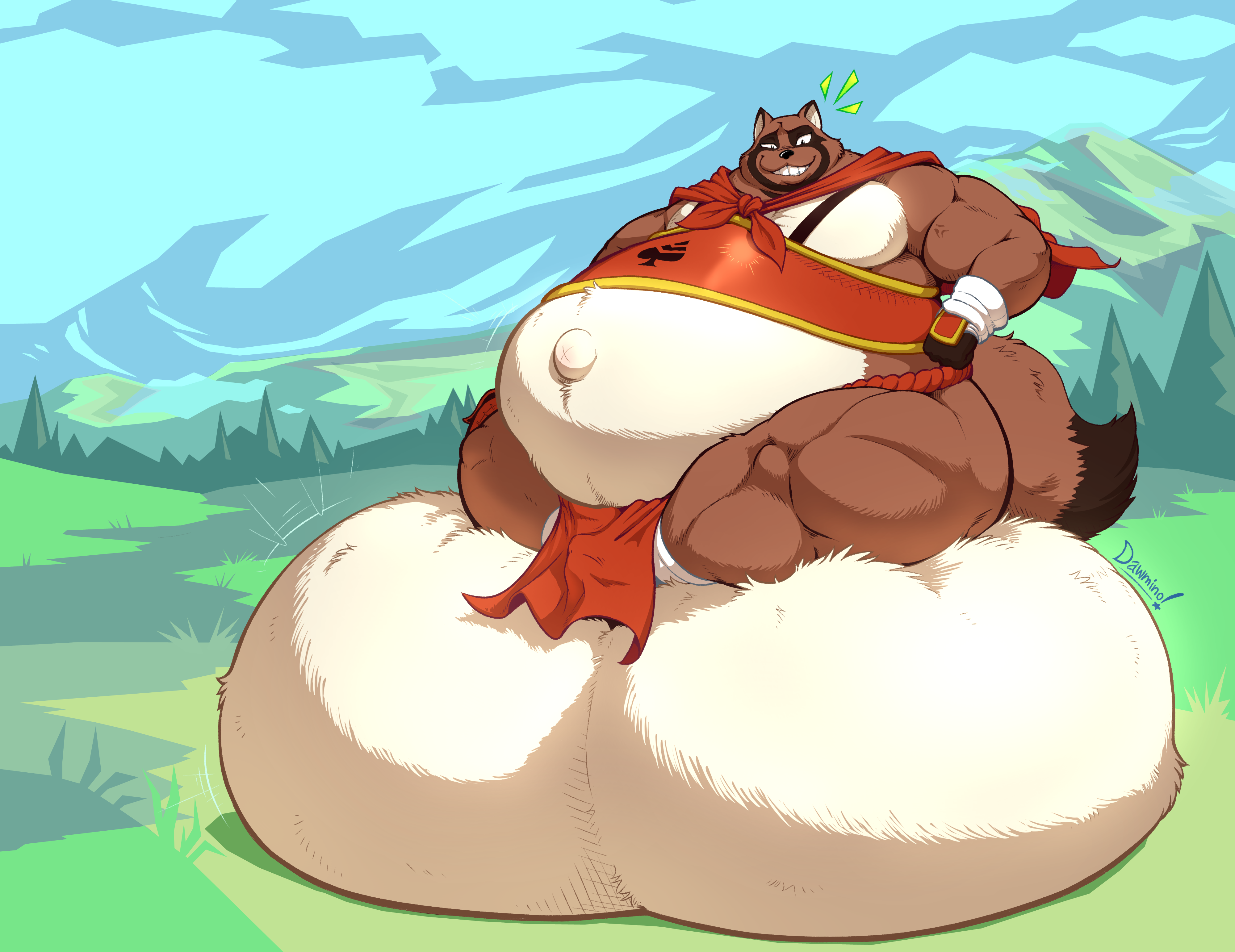 Tanuki like this here or these here and here here, here, here, here. I can see the Tanuki race having the abilities that revolves around shapeshifting and growing their huge breast and/or balls while having traits that allows them to weaponize their huge junk using them in or out of combat.