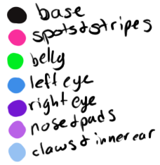I didn't know if you wanted a mix of pink and green all over the body so I just made the belly mark green and all the spots and stripes pink. Hope you like it! <3 Also just made it female cuz it looked more like one than a male xD;