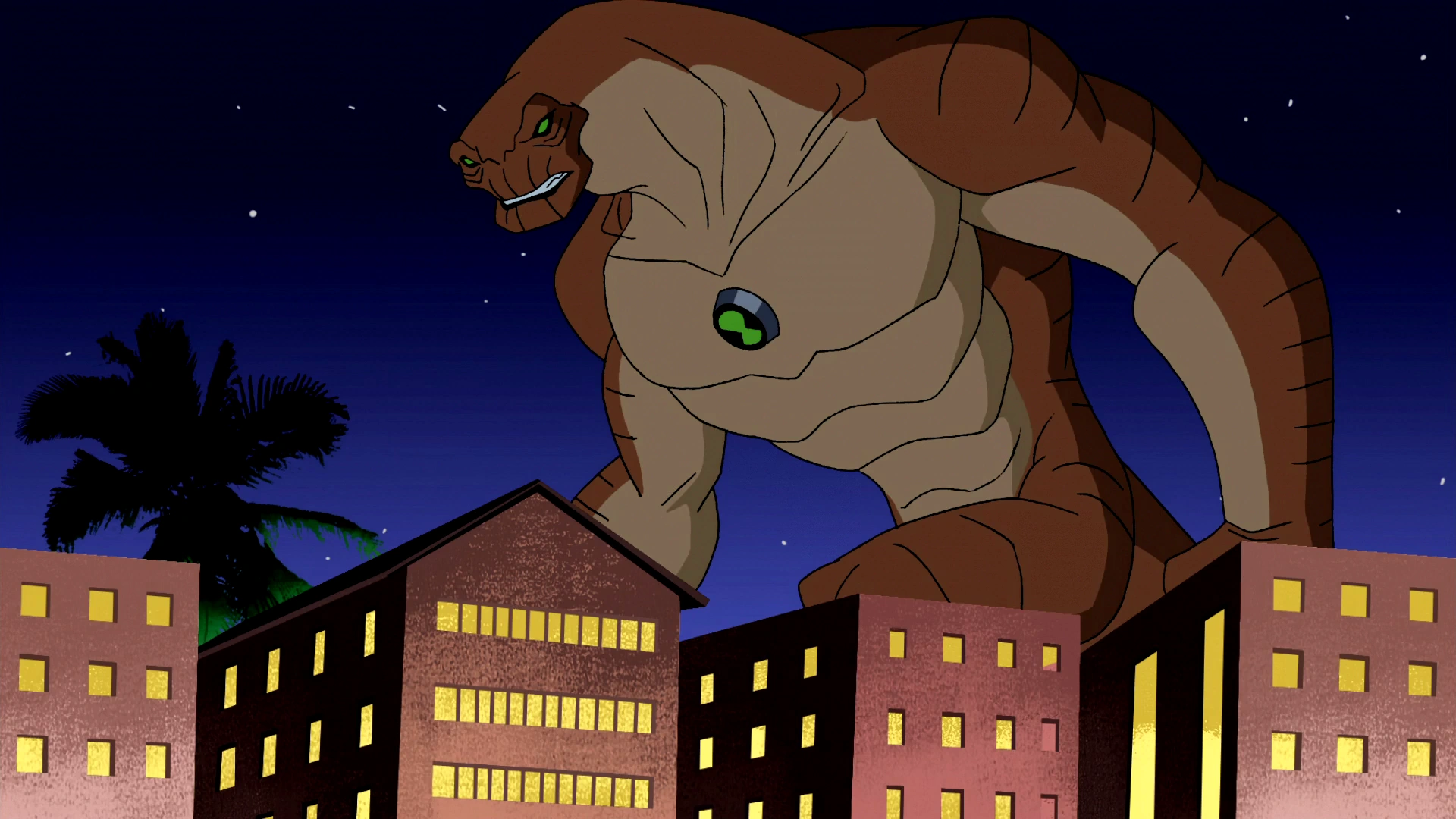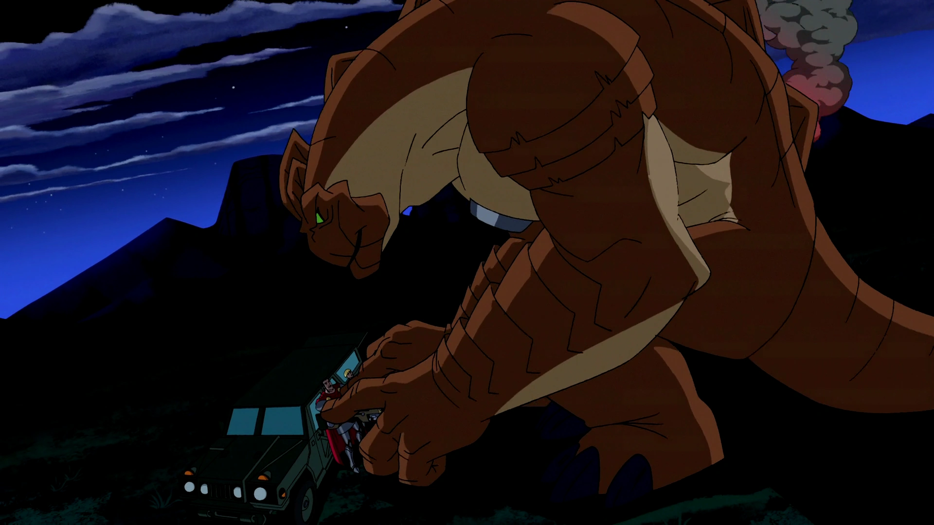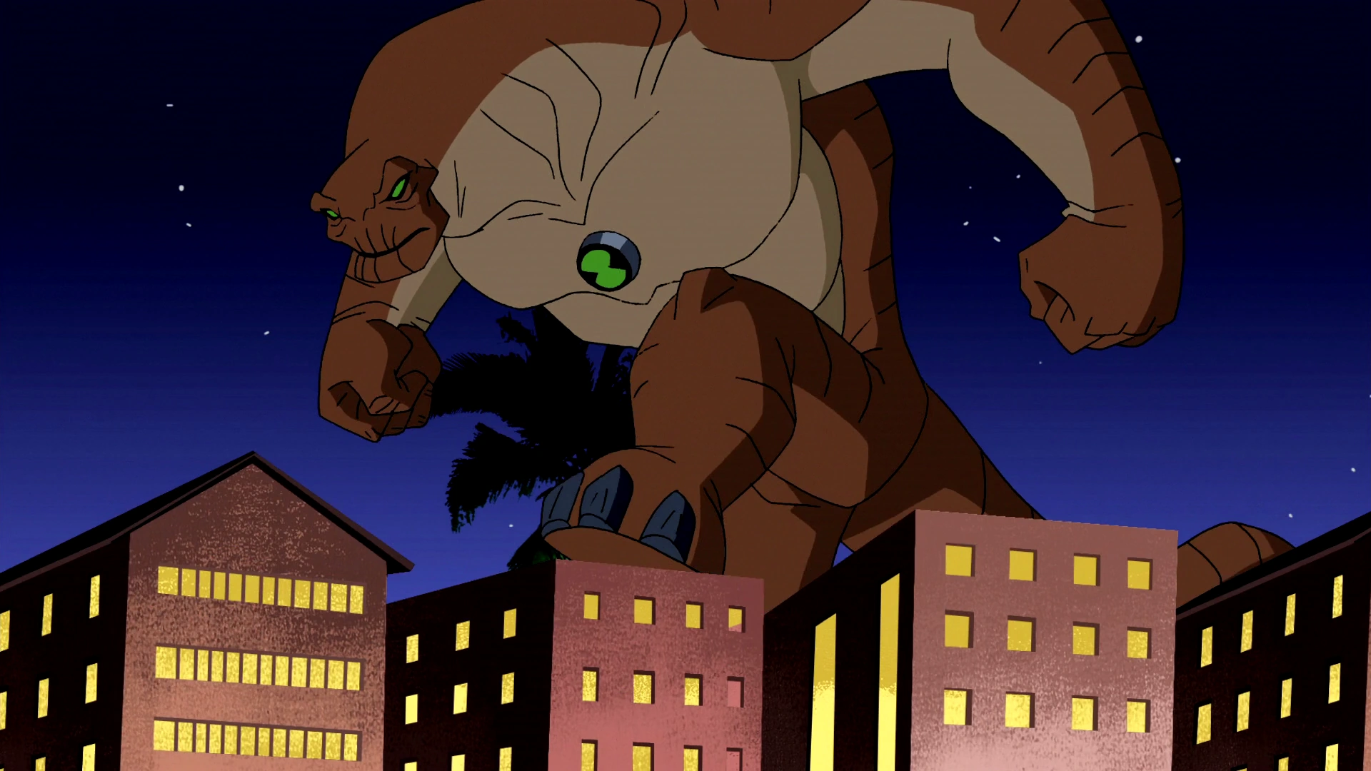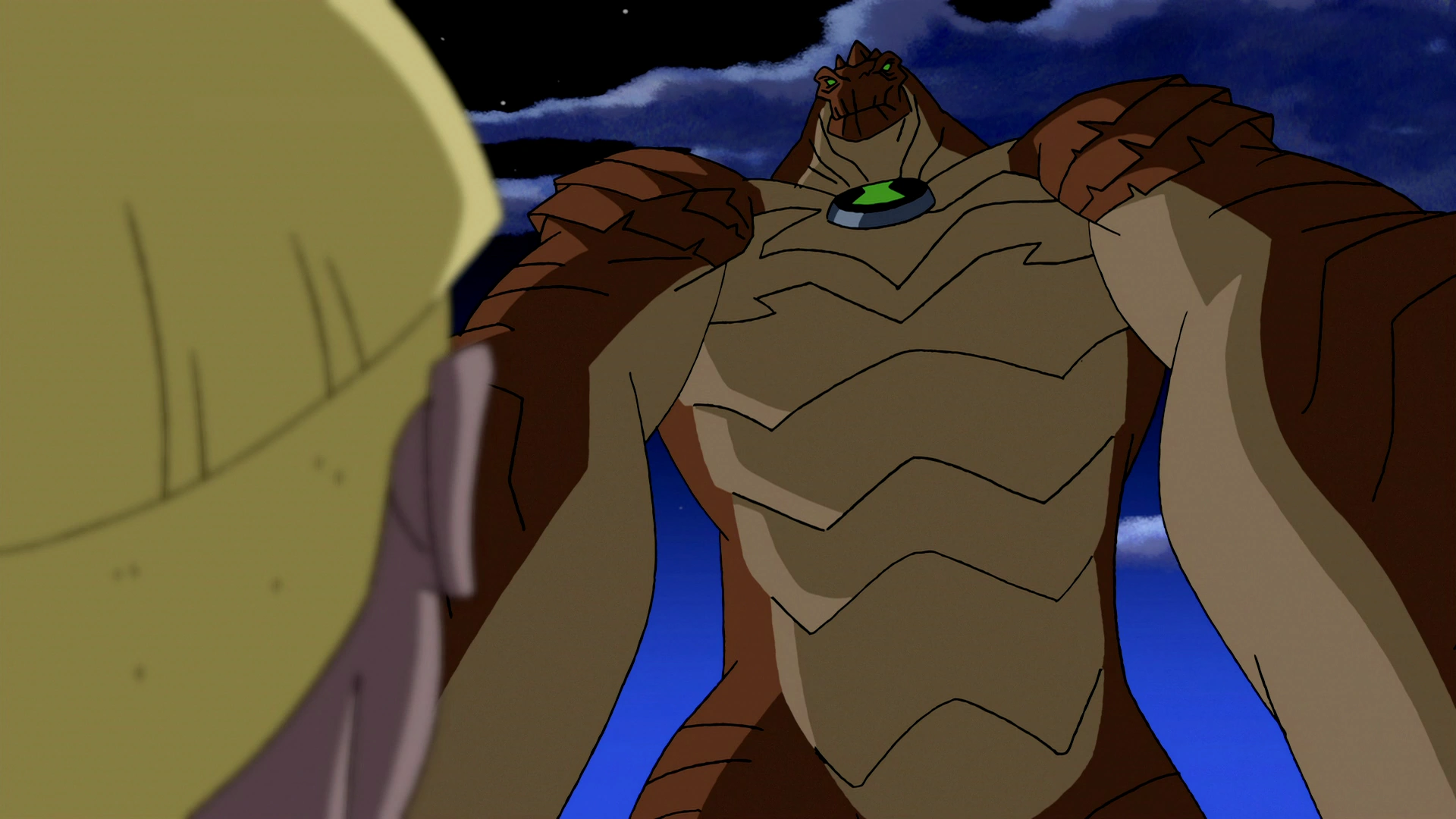 My fave 12ft Humungousaur moment was from "Ghost Town" where he tries to catch a burrowing alien at a mini golf course. Due to the mini-golf building props, he look giant. That really fooled me.