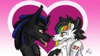 *Joe places his paw on Neon's grasping tightly as Neon turned to look at him blushing*