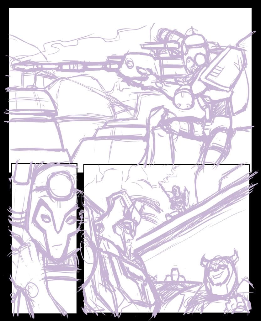 I tried to make it look as close as I could to to the original image, but of course because of the size changes in panels and such to fit everything everywhere...but oh well. I'm still working on backgrounds and ESPECIALLY weapons...there are a few places on the gun start make me twitch but eh, the colors seem to hide that fact from me. Links to the sketch and linework, just because I can: