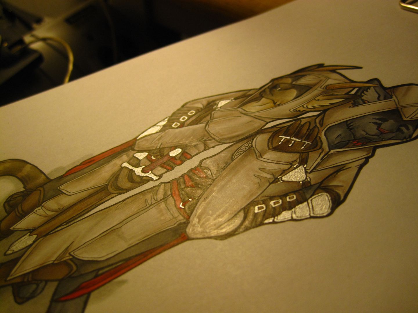 Definitely sacrificed time to warrant more quality on this one; instead of the usual 2hrs, I topped almost 7hrs just today. Totally worth it aside from my hand cramping. :c lol. Getting commissions for fanart/cosplay makes me so happy~~! <D I was going to put a blood splatter in the BG to keep my resolution going, but after all this work I feared the very last thing I did would ruin it, ugh.
