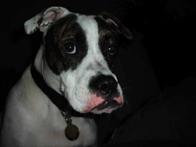 was like "That's why I'm a Pibble and why I like to draw them. Short muzzles."Sooooo I begged a picture from him of his dog, Brando. I got one, and here it is in all it's glory. xD It's not that great, but I think its better than the wolf I did earlier. XDD