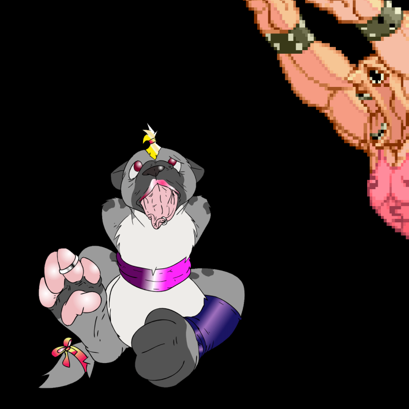http://i3.photobucket.com/albums/y5...../Whygodwhy.png Here ya go. It's...pre vore...or something. Really, I just think that your hyena needs to stay away from anything that can tie him up...or Street Fighter tournaments.