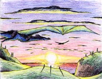 Doran and Cyria perching contemplatively, watching a sunset and pondering the future. 1998 I think.