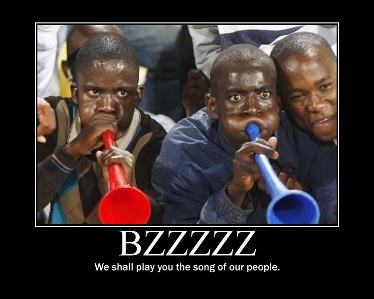 (Also there would be riots and boycotts of the games without those fucking annoying horns. FIFA should have done its homework when they picked the site of the World Cup.)