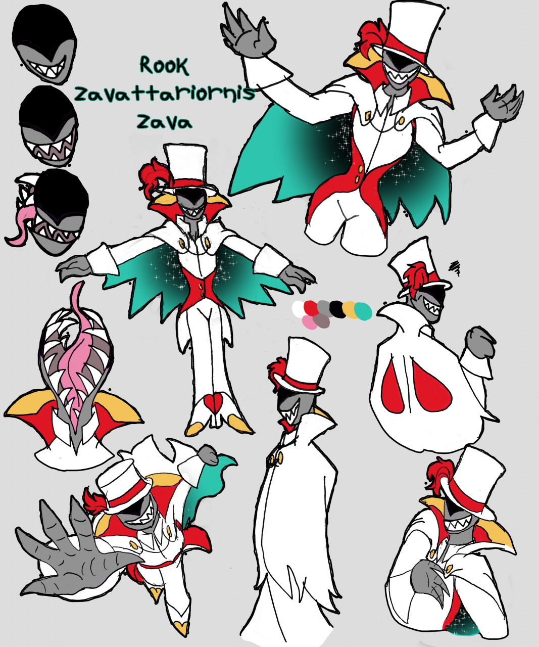 Rook (Real name Zavattariornis, known only to his wards and then often shortened to Zava, he/him agender) is a neutral/evil glutton spirit who acts as a fairy godfather for hire, of sorts- in exchange for being able to eat a certain amount of his new ward's lifespan (the base agreement is three years, he won't NOT accept more) he'll act as a protector and kill and consume anything seriously threatening them.