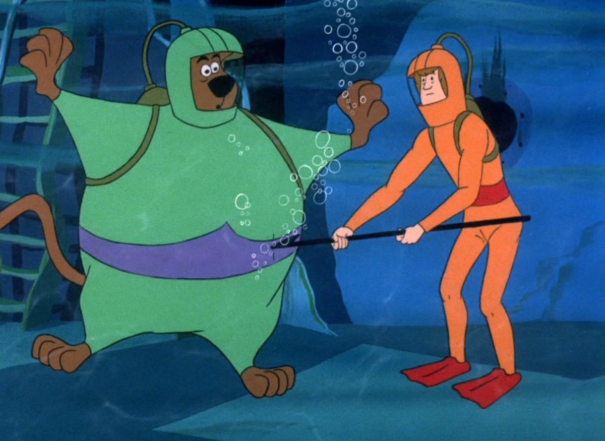 Most of the time while being Scooby, I'll be doing both scuba diving and scuba inflating. Here are the same scuba suits Scooby wears from a few episodes of any Scooby-Doo shows: