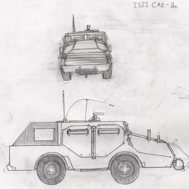 The CAZ-8 is a GP vehicle designed by ISIS Defense for the Callentine military.Designed for both conventional and unconventional threats, they are known for their reliability and versatility, easily fitting into the many roles it can fill out.