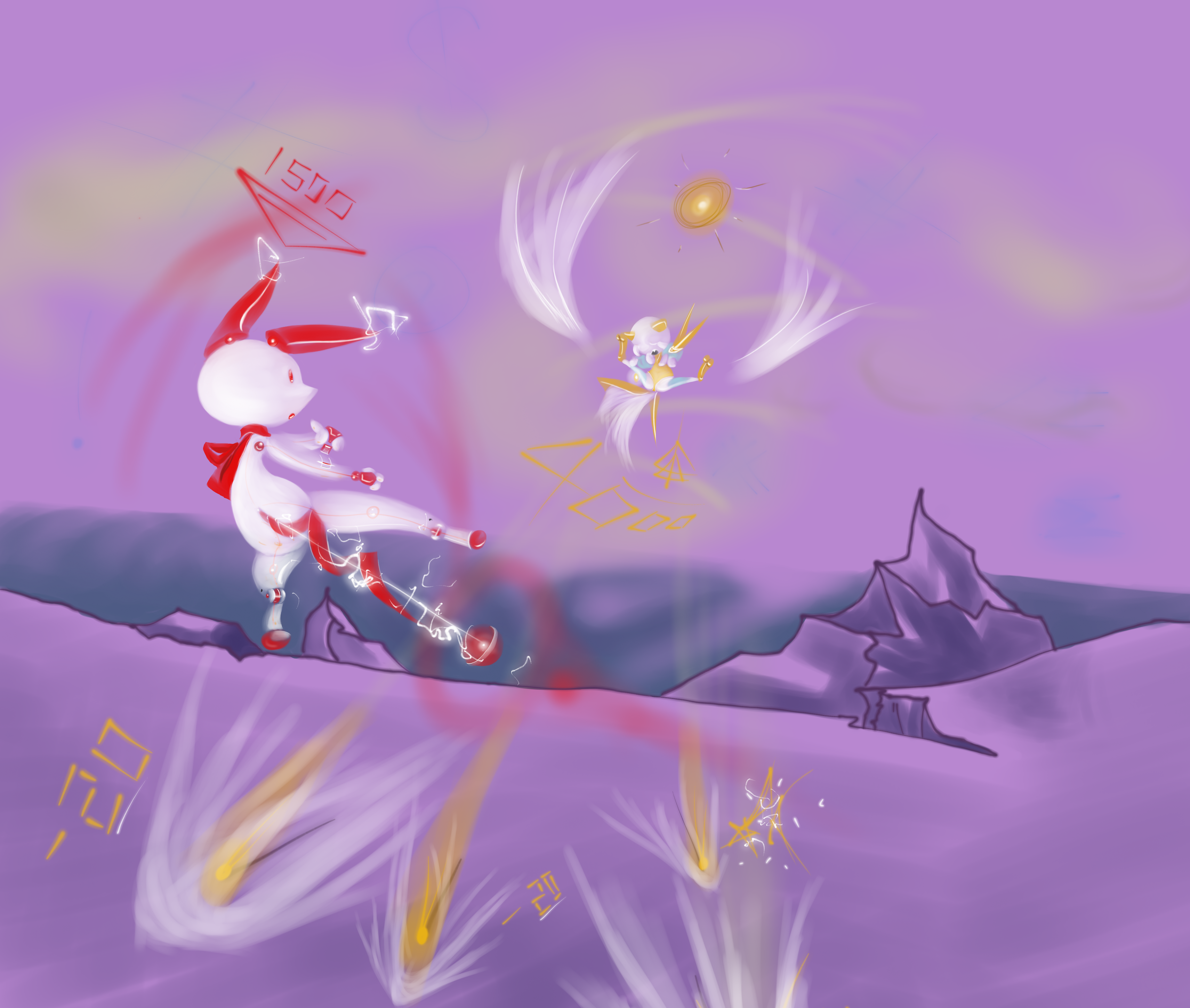 To be totally frank, I have very little idea of what these guys are. When I first named the file, it was named "databattle" so I figure they're some kind of digital entities fighting each other. As for who they are, or why they're fighting, or where they're fighting, I don't have much background info except what's there on the image. Unless you want me to make more info and try to flesh it out? I could try.