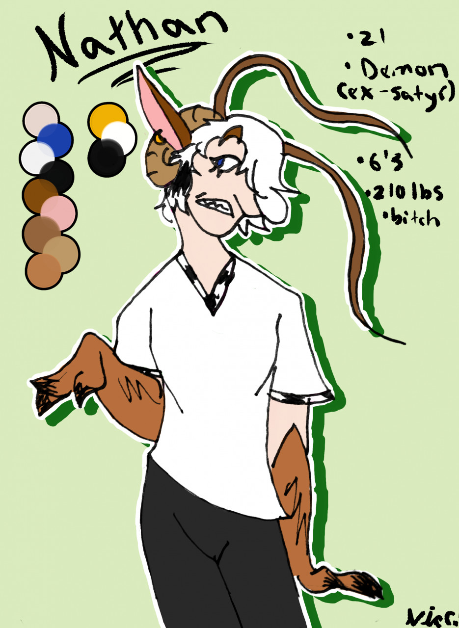 An old OC gets a fresh ref! Nathan is, as always, a bitch of a satyr-turned-demon