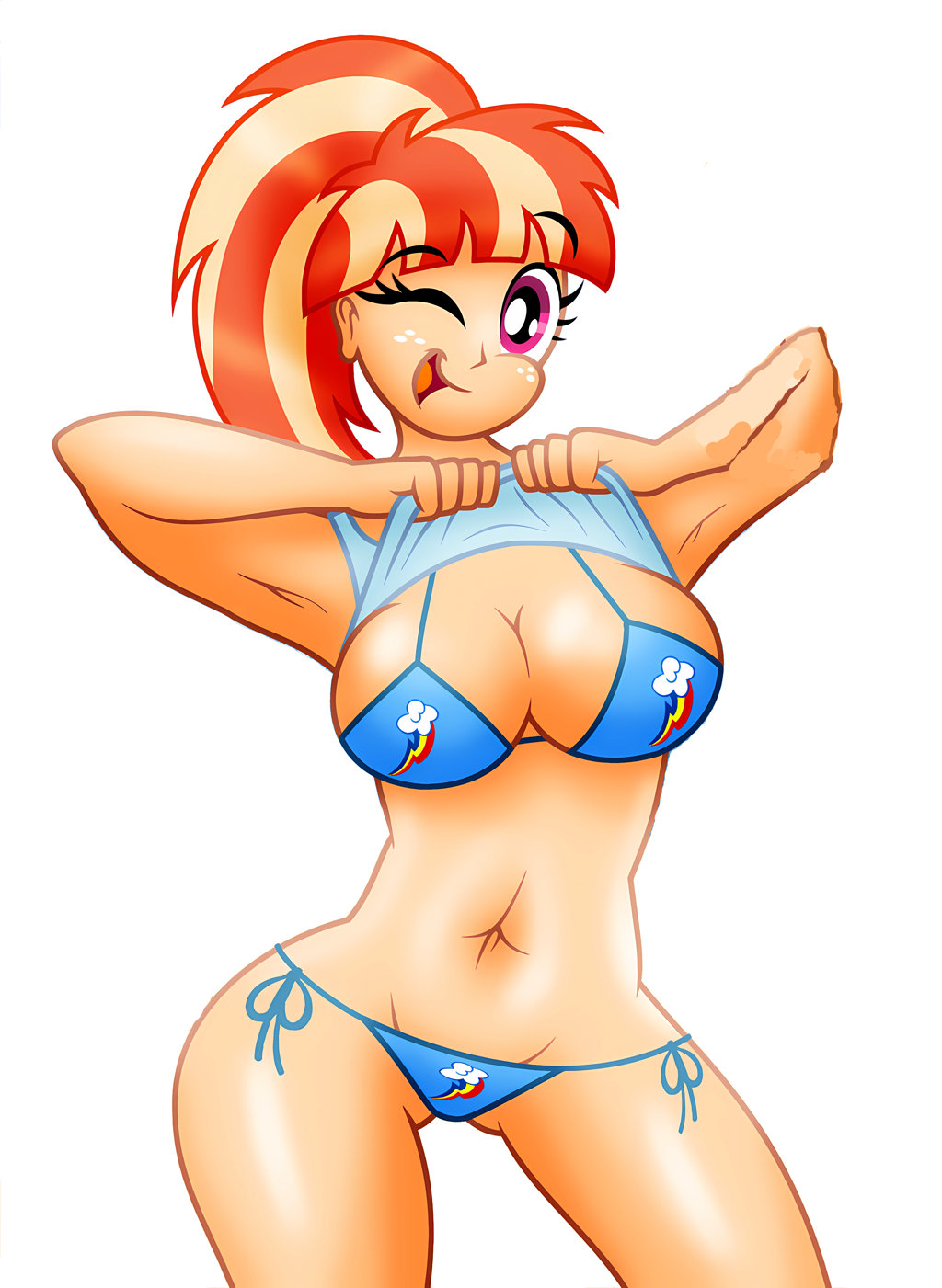 aleximusprime my_little_pony friendship_is_magic humanized hasbro windy whistles windy_whistles windywhistles mother mom milf big breasts large huge boobs juggs cleavage curvy voluptuous wide hips thick thunder thighs naval belly_button belly button shirt_lift ponytail wink winking adorasexy sexy cute cutie bikini swimsuit edit dummy_thicc thicc pawg bbw femaleReport this content