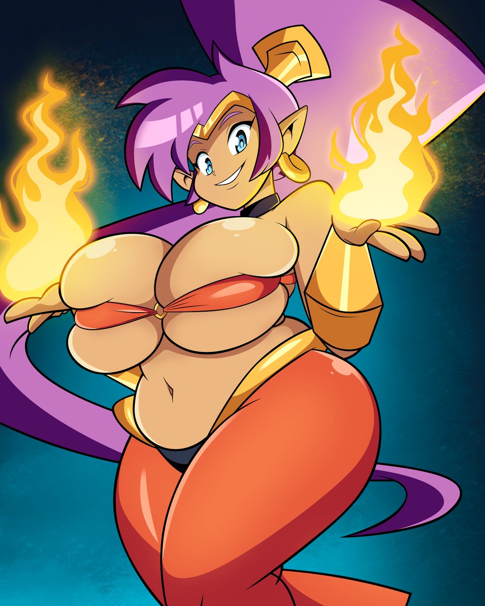 grimphantom shantae wayforward genie half_genie halfgenie purple_hair purplehair ponytail big breasts large huge boobs gigantic enormous humongous juggs tits titties boobies cleavage curvy voluptuous wide hips thick thunder firm plump thighs naval belly_button belly button flame fire magic torch lighting light dummy_thicc thicc top_heavy adorasexy sexy cute cutie seductive belly_dancer bellydancer muffin_top muffintop muffin top slighty chubby slightly_chubby slightlychubby femaleReport this content