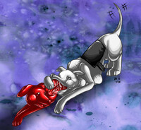 Commissionied piece by BBF of his character getting nommed by a really hungry Arcanine.