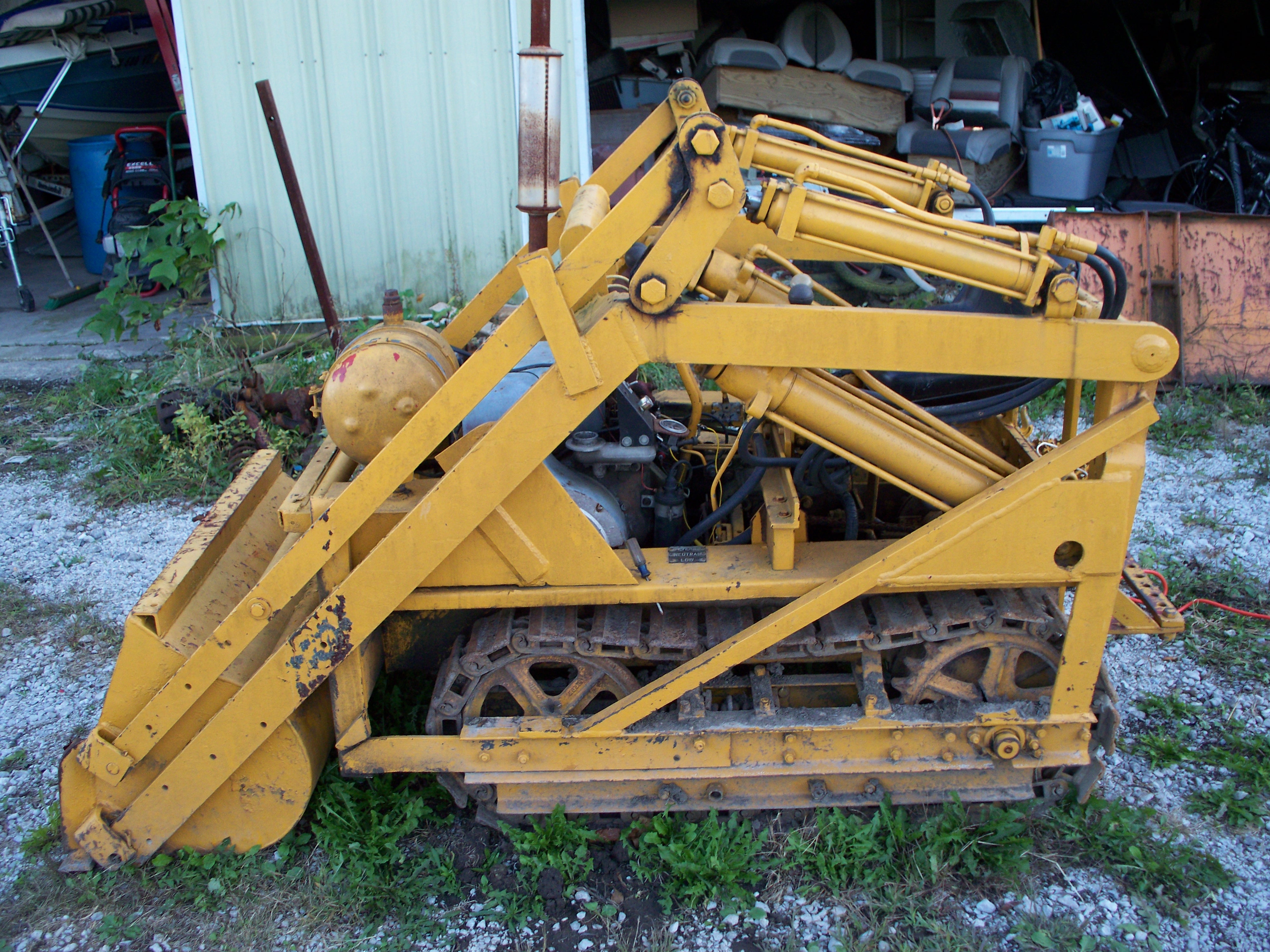 This picture reminds me, we recently got a small track loader here from a local salvage yard, but we don't really know anything about it other than that it apparently has a Wisconsin motor. Can't seem to find any manufacturer names on it anywhere.
