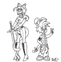 Wraith over at MSF High is working on having an RPG book published... infact it's completely written and most of the graphics are done. Note the word "most". In exchange for a copy of the book (FREE BOOK WHOO!) and some credits inside of it, I volunteered my services to do some illustrations for the "Advantages and Disadvantages" section. Hopefully, they turn out alright.
