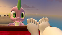 ''EEK!!'' squealed Rarity the moment she felt the ticklish sensation on her feet. She jumped so hard, that she is about to spill her drink.