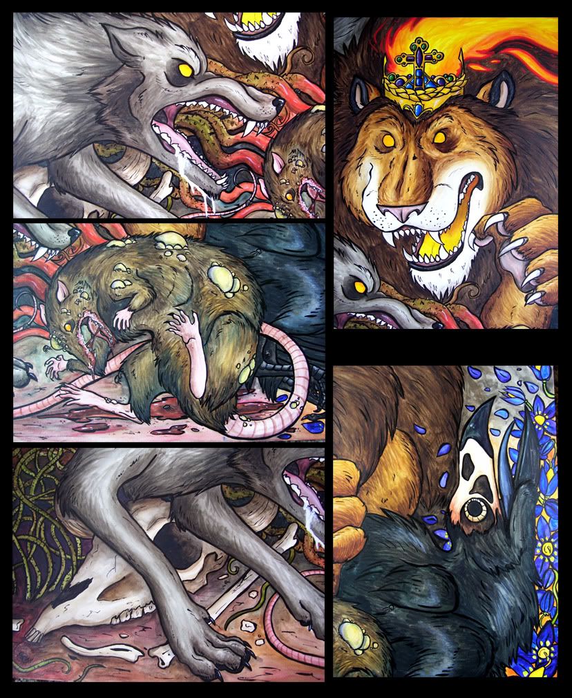 But anyway, it's my interpretation of the Four Horsemen of the Apocalypse using classic animal symbolism and all that. I hope that it's obvious enough that you can tell what animal represents what.