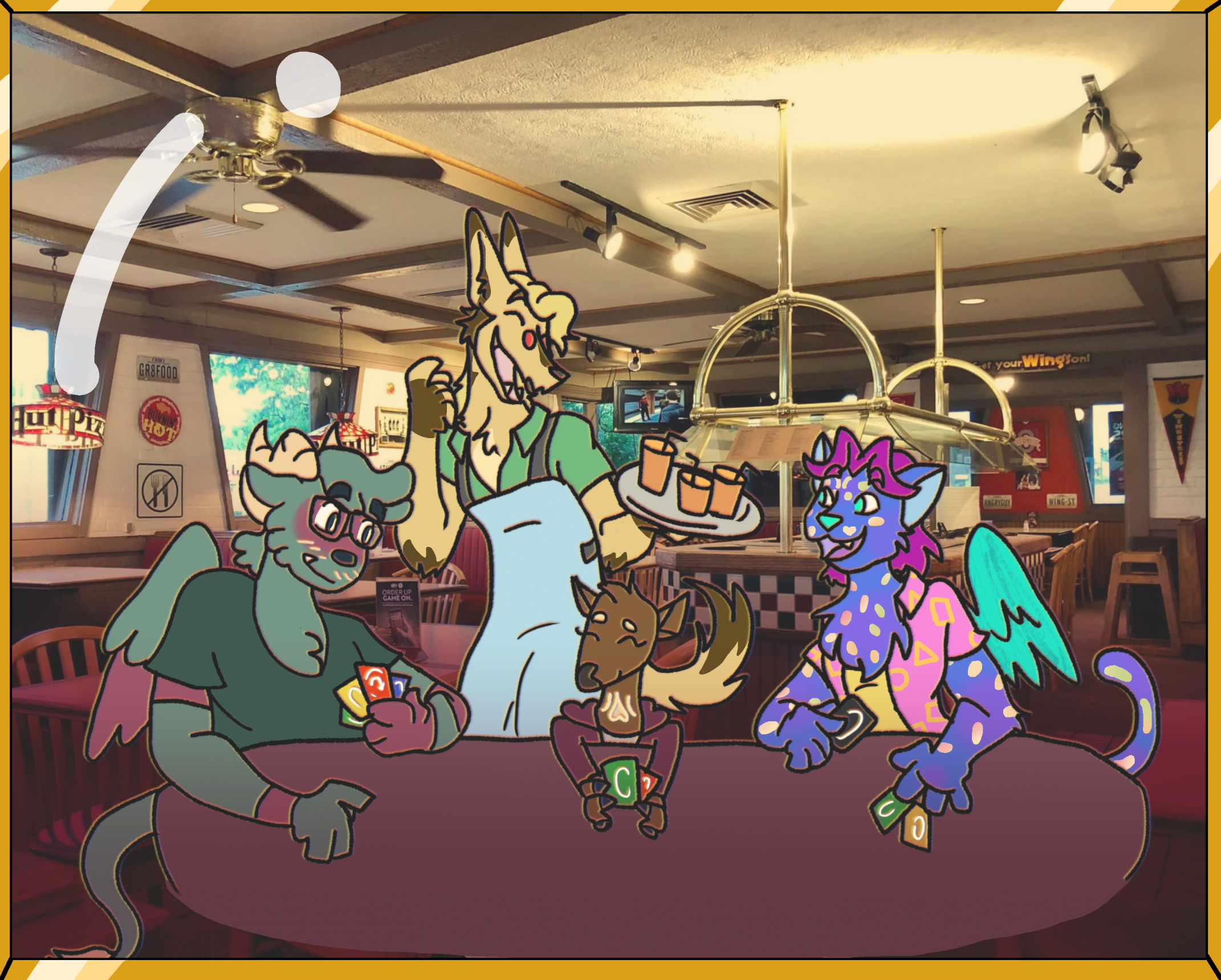 An art fight piece from July! A group attack featuring Antlers the Berger Picard and a few other people's sonas! I went for trying to make it look like an animation cel