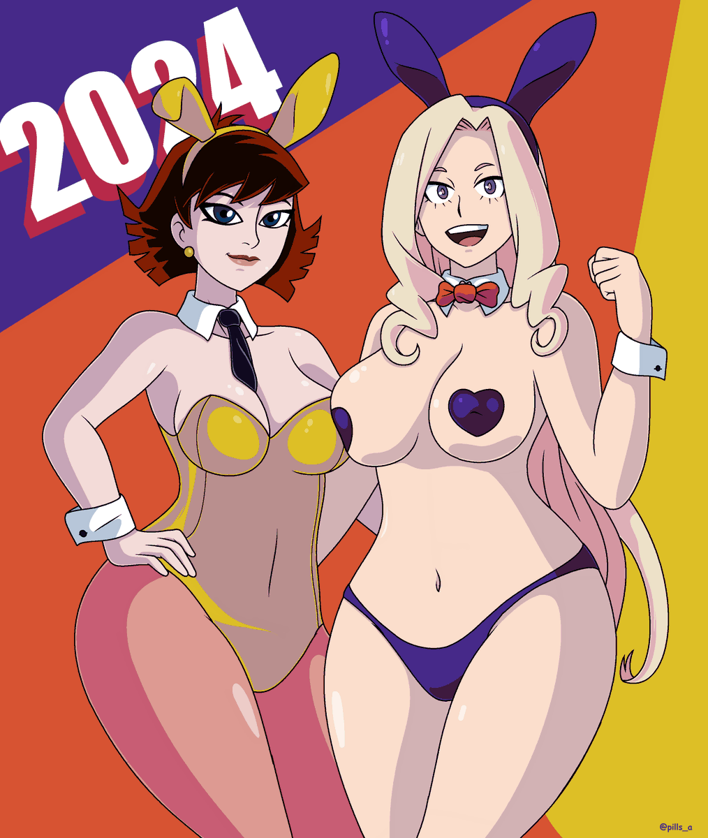 crossover marvel comics marvel_comics wasp the_wasp thewasp janet van dyne janet_van_dyne janetvandyne brunette avengers_emh my_hero_academia yuu takeyama yuu_takeyama yuutakeyama mount lady mount_lady mountlady mt_lady mtlady blonde bunnygirl bunny_ears seductive pasties big breasts large huge boobs cleavage wide hips thick thunder thighs topless navel belly_button belly button tie bowtie cuffs skimpy adorasexy sexy cute cutie thigh_highs femaleReport this content